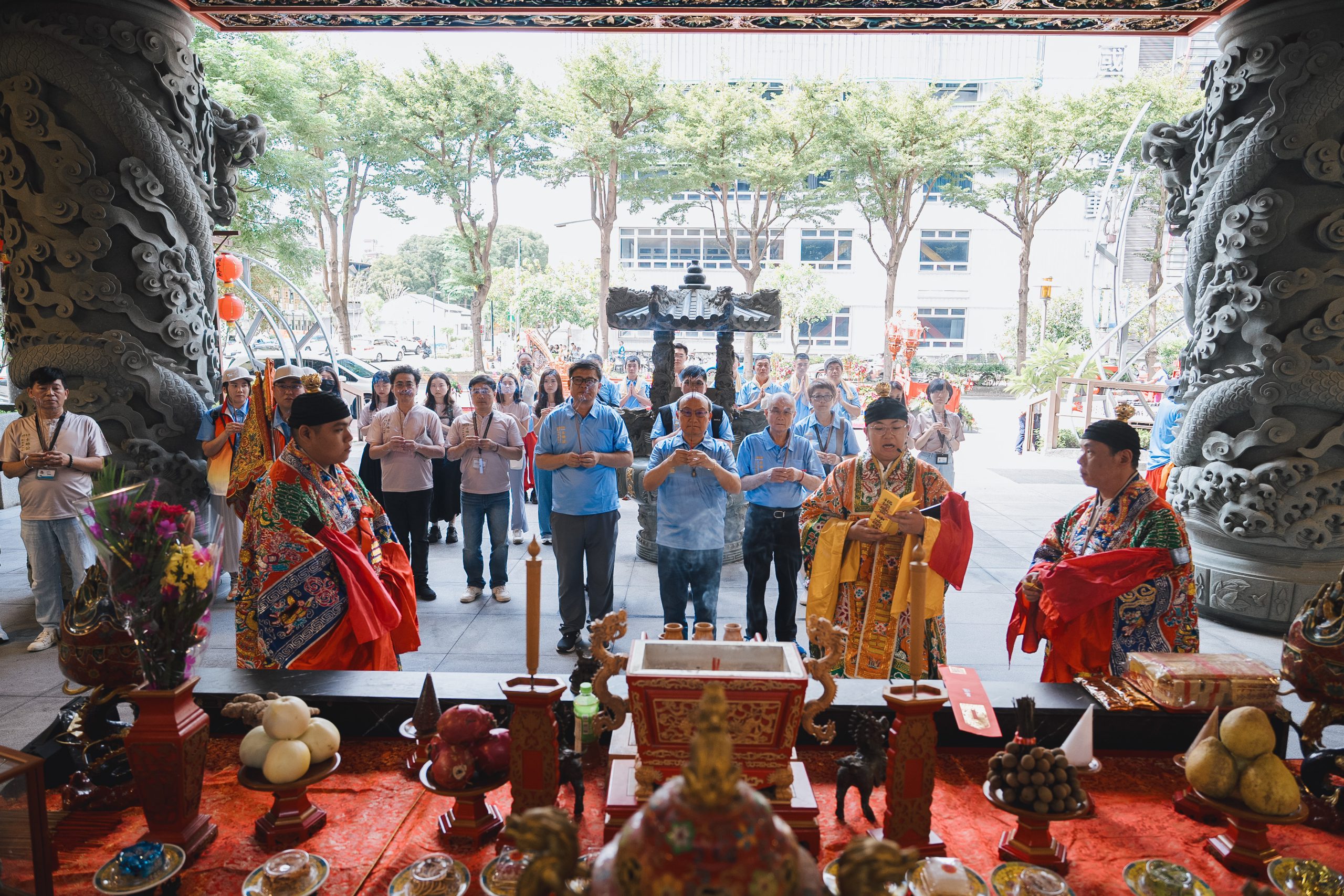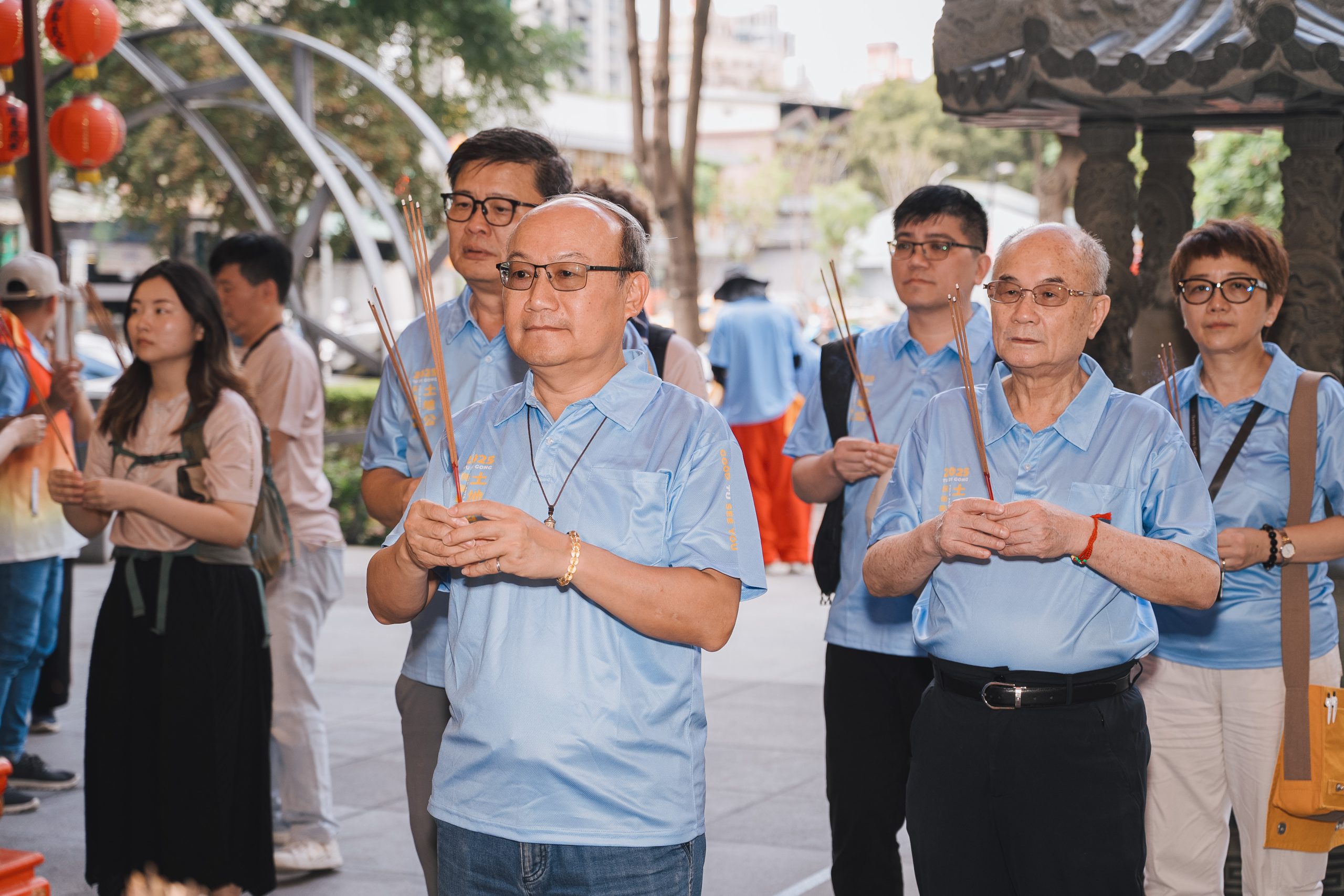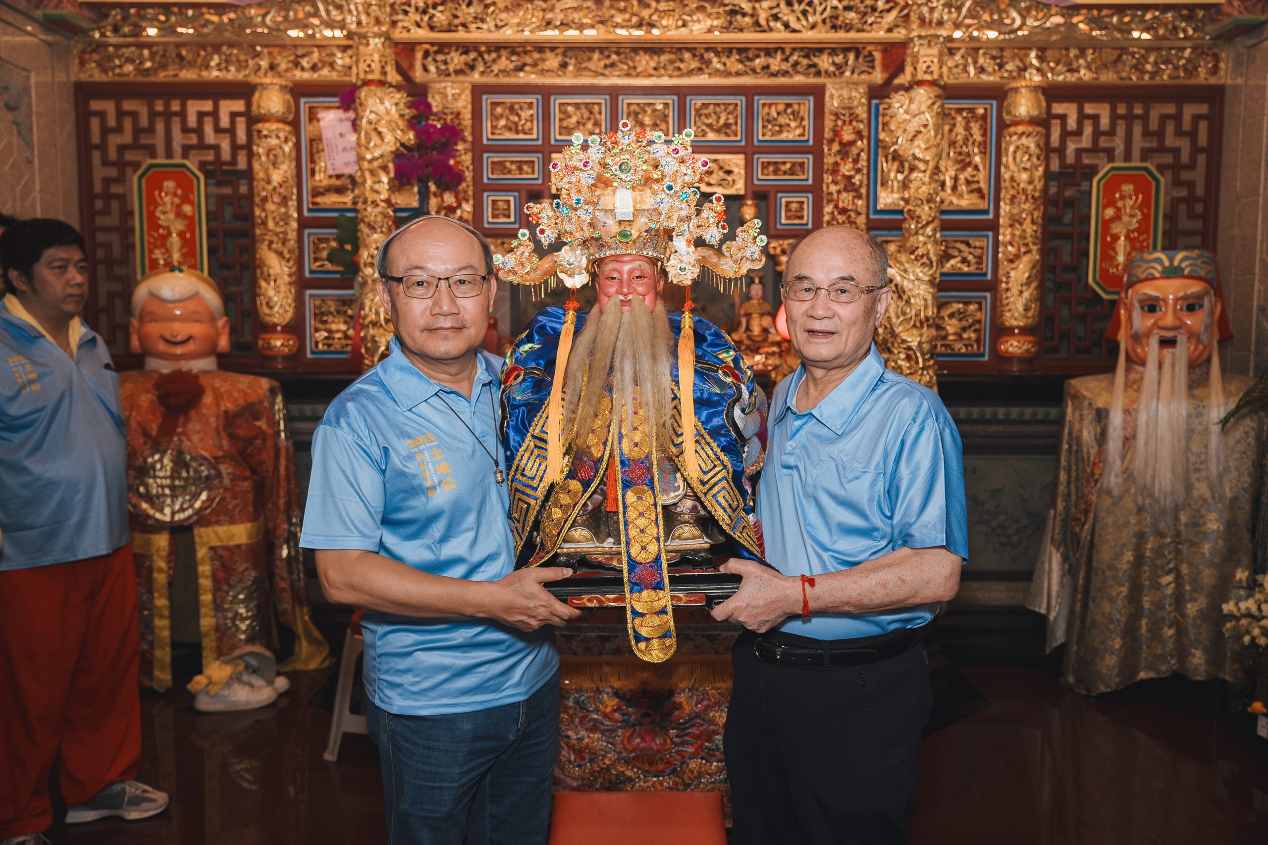 現場並有桃園市文化基金會顧問簡馨泓、桃園市土地公文化館總監陳若蘭率領同仁共同出席敬拜祈福,以齊心完成恭迎市公移駕的儀式。