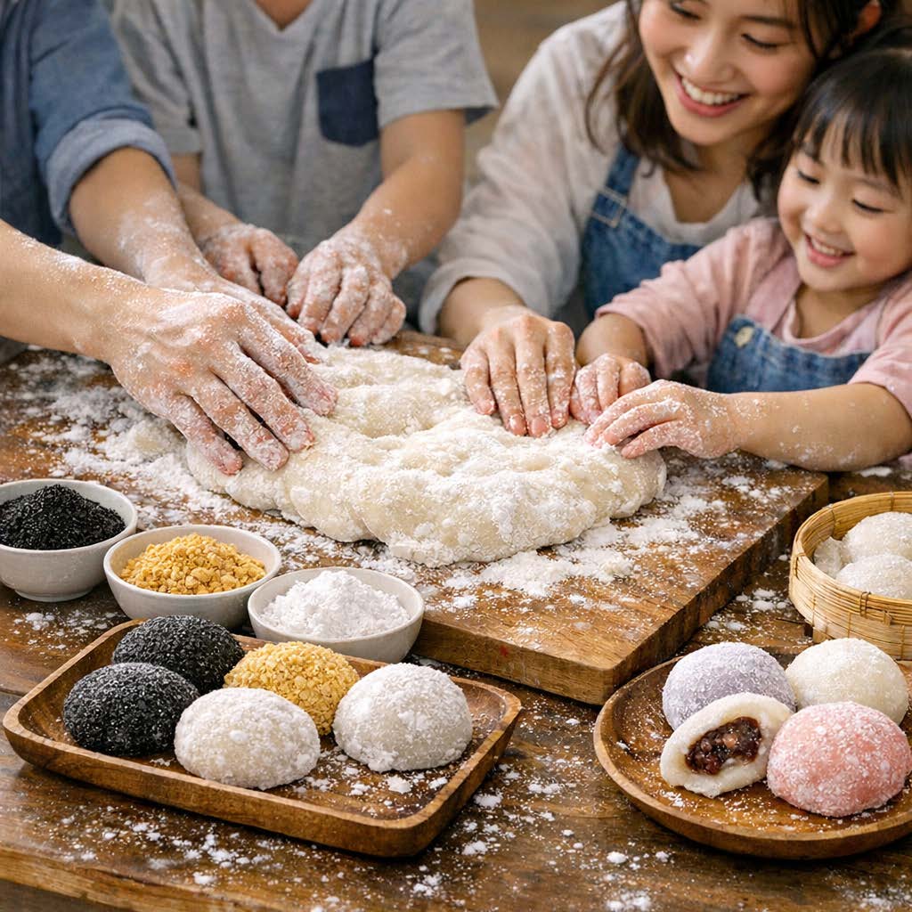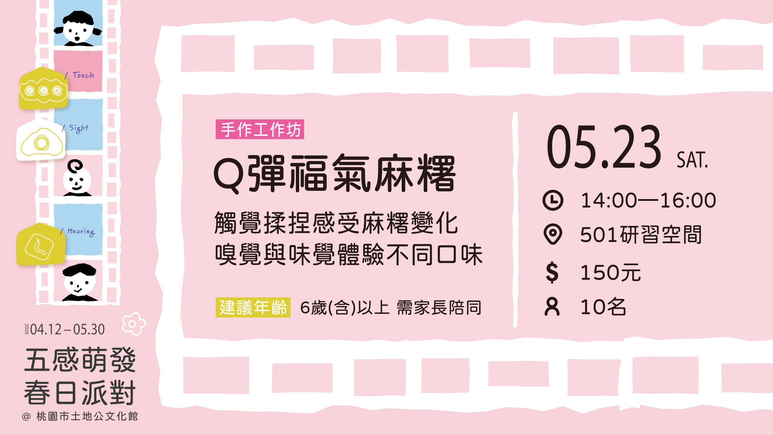 透過製作麻糬體驗觸覺變化,並運用不同口味粉末刺激嗅覺與味覺。也透過共同揉捏麻糬的過程,釋放壓力並享受甜蜜成果,象徵親子情感緊密相連。